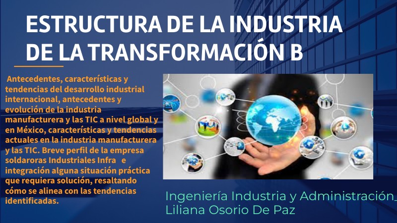 Antecedentes, características y tendencias del desarrollo industrial internacional, antecedentes y evolución de la industria manufacturera y las TIC a nivel global y en México, características y tendencias actuales en la industria manufacturera y las TIC. Breve perfil de la empresa soldaroras Industriales Infra e integración alguna situación práctica que requiera solución, resaltando cómo se alinea con las tendencias identificadas.