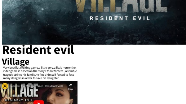 Very beatiful,exciting game,a little gory,a little horror.the videogame is based on the story Ethan Winters , a terrible tragedy strikes his family,he finds himself forced to face many dangers in order to save his daughter.