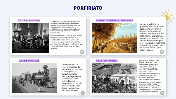En el Porfiriato (1887-1911) la economía del país recibió un impulso casi milagroso, las líneas ferroviarias dieron un segundo aire a la minería, sector castigado desde la independencia del país, facilitando el traslado de mercancías de un punto remoto a otro.