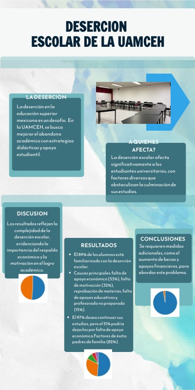 - Causas principales: falta de apoyo económico (53%), falta de motivación (32%), reprobación de materias, falta de apoyos educativos y profesorado no preparado (15%).