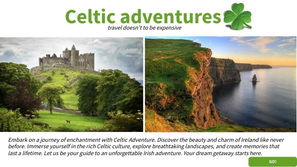 Embark on a journey of enchantment with Celtic Adventure. Discover the beauty and charm of Ireland like never before. Immerse yourself in the rich Celtic culture, explore breathtaking landscapes, and create memories that last a lifetime. Let us be your guide to an unforgettable Irish adventure. Your dream getaway starts here.