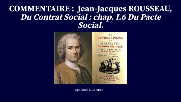 COMMENTAIRE : Jean-Jacques ROUSSEAU, Du Contrat Social : chap. I.6 Du Pacte Social.