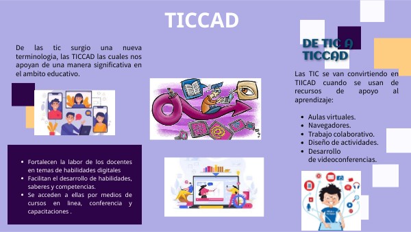 De las tic surgio una nueva terminologia, las TICCAD las cuales nos apoyan de una manera significativa en el ambito educativo.