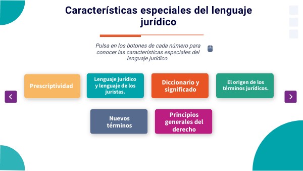 Pulsa en los botones de cada número para conocer las características especiales del lenguaje jurídico.