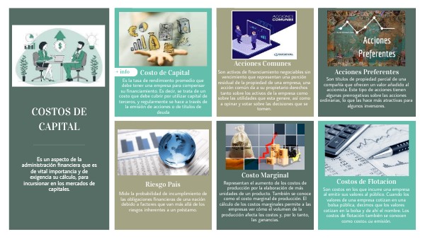 (2023) Recuperado de. Costo de capitalhttps://www.miblum.com/glosario/costo-de-capital-que-es-y-como-funciona (2023). Acciones comúnes.Recuperado dehttps://www.euroinnova.mx/blog/que-son-acciones-comunes (2023).Acciones preferentes. Recuperado dehttps://www.ig.com/es/glosario-trading/definicion-de-acciones-preferentes (2023). Qué es el riesgo país. Recuperado de https://www.sabermassermas.com/que-riesgo-pais-como-afecta/