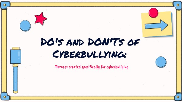 - DON'T engage in cyberbullying behavior. It's hurtful and can have serious consequences. - DON'T share or forward hurtful messages, pictures, or videos about others. - DON'T respond to or retaliate against cyberbullies. Instead, seek help from a trusted adult or authority. - DON'T ignore cyberbullying incidents. Speak up and support the victims. - DON'T underestimate the impact of your words online. They can have long-lasting effects on individuals.
