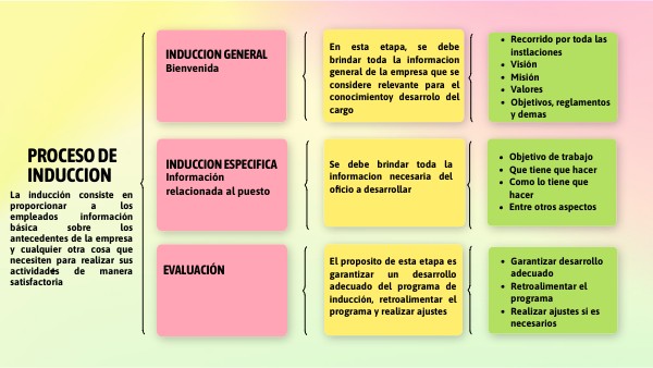 La inducción consiste en proporcionar a los empleados información básica sobre los antecedentes de la empresa y cualquier otra cosa que necesiten para realizar sus actividades de manera satisfactoria