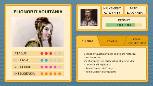 Elionor d'Aquitània va ser una figura històrica molt important.Va obstentar tres cárrecs durant la seva vida: - Duquessa d'Aquitània - Reina Consort de França - Reina Consort d'Anglaterra