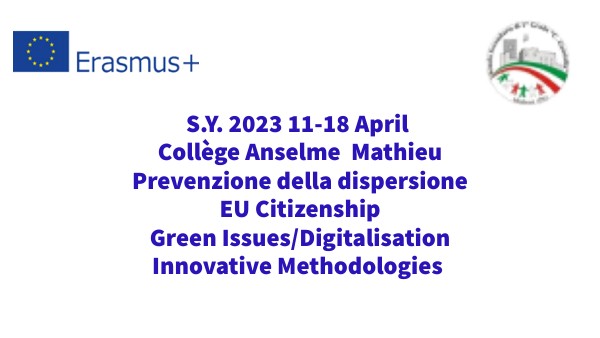 S.Y. 2023 11-18 April Collège Anselme Mathieu Prevenzione della dispersione EU Citizenship Green Issues/Digitalisation Innovative Methodologies
