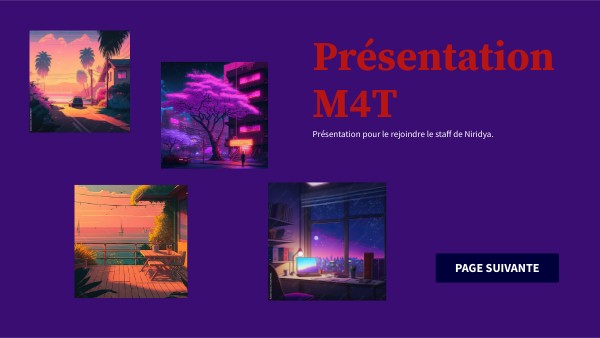 Il y'aura plus d'information sur la candidature écrite sur Discord. J'ai fais ce diaporama pour l'originalité.
