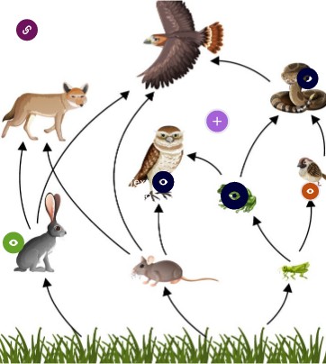 Una red alimentaria es la superposición de cadenas alimentarias dentro de un ecosistema. Los seres vivos no comen lo mismo todo el tiempo. Al igual que a las personas, a los animales les gusta la variedad en sus dietas. Esto se debe a que los seres vivos comen de múltiples cadenas alimentarias, lo que crea una red alimentaria. Algunos seres vivos pueden comer de diferentes niveles de una cadena alimentaria. Los osos, por ejemplo, consumen plantas, pero también consumen pescado.