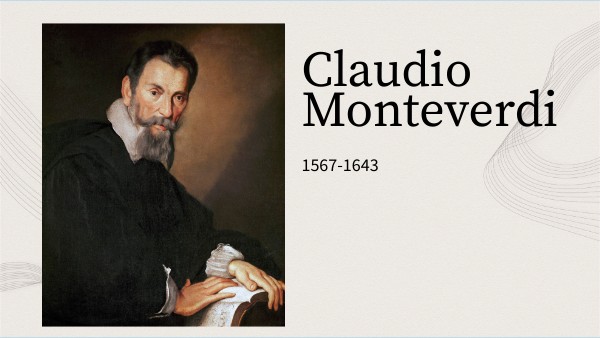 Claudio Monteverdi nació el 15 de mayo de 1567, en Cremona[Italia]. Es conocido por su innovación en el género del madrigal, su quinto libro de madrigales marca un cambio hacia un estilo más expresivo y apasionado. Es considerado "el padre de la ópera".