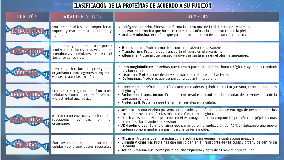 - Colágeno: Proteína fibrosa que forma la estructura de la piel, tendones y huesos.
