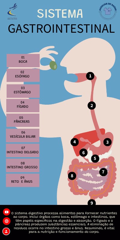O sistema digestivo processa alimentos para fornecer nutrientes ao corpo. Inclui órgãos como boca, estômago e intestinos, que têm papéis específicos na digestão e absorção. O fígado e o pâncreas produzem substâncias essenciais. A eliminação de resíduos ocorre no intestino grosso e ânus. Resumindo, é vital para a nutrição e funcionamento do corpo.