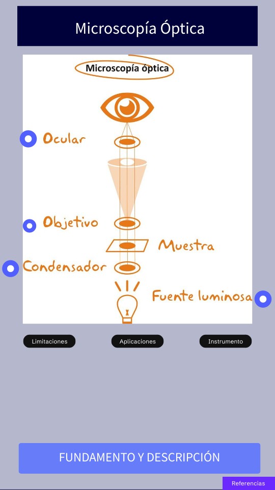 Descripción de la técnica:La Microscopia Óptica (MO) es una técnica de observación que utiliza luz visible para estudiar detalles estructurales y morfológicos de muestras. Su utilidad radica en la capacidad para examinar materiales biológicos, industriales y científicos a nivel microscópico. Las ventajas incluyen la facilidad de uso, la capacidad de observar muestras en condiciones casi naturales y la posibilidad de obtener imágenes en tiempo real.Fundamento teórico:La MO se basa en el principio de la interacción de la luz con las estructuras de la muestra. La luz pasa a través de la muestra o se refleja en ella, y las diferencias en la refracción, absorción y dispersión de la luz permiten la formación de una imagen aumentada y detallada.