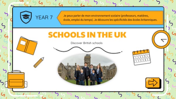 Je peux parler de mon environnement scolaire (professeurs, matières, école, emploi du temps). Je découvre les spécificités des écoles britanniques.
