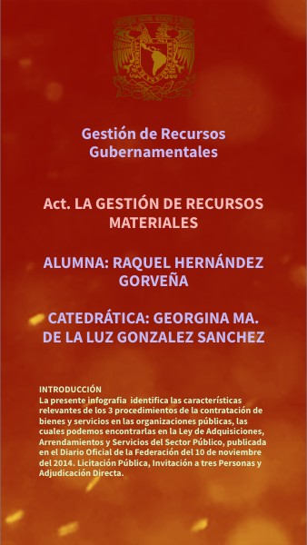 INTRODUCCIÓN La presente infografia identifica las características relevantes de los 3 procedimientos de la contratación de bienes y servicios en las organizaciones públicas, las cuales podemos encontrarlas en la Ley de Adquisiciones, Arrendamientos y Servicios del Sector Público, publicada en el Diario Oficial de la Federación del 10 de noviembre del 2014. Licitación Pública, Invitación a tres Personas y Adjudicación Directa.