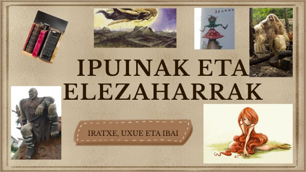 Elezahar famatuak: Midas erregea, Sísiforen mitoa… Elezahar euskaldunak: Sorginak, erraldoiak, iratxoak, dragoiak, laminak, Mari jainkosa…