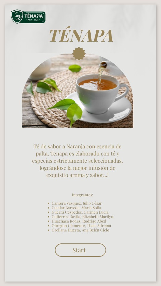 Este emprendimiento tiene como objetivo proporcionar a las personas oportunidades beneficiosas para problemas muy frecuentes del dia a dia, los beneficios del TÉNAPA es curar y aliviar enfermedades de manera más natural y saludable posible, Este emprendimiento nació o surgió por una necesidad, ya que personas muy cercanas padecen de presión arterial, de ACV, colesterol. arteriosclerosis y enfermedades coronarias. Controlar el peso, Controlar el azúcar en sangre, Evita el estreñimiento, controla el colesterol y triglicéridos,