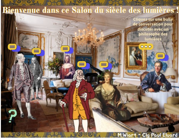 Cliquez sur une bulle de conversation pour discuter avec un philosophe des lumières