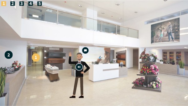 Super, nous voilà de retour dans la salle principale. Avant que vous retourniez à l'accueil, j'aimerais vous poser 5 questions. Allumez la télévision.