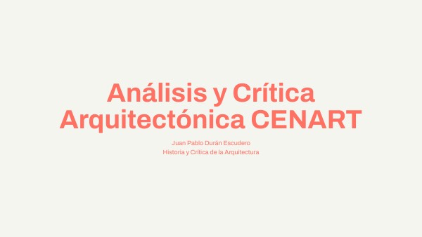 López, A. I. (2020, 23 febrero). CENART, un espacio para las artes en la Ciudad de México. Architectural Digest. https://www.admagazine.com/lugares/cenart-un-espacio-para-las-artes-en-la-cdmx-20200223-6499-articulos CENART: CENTRO NACIONAL DE LAS ARTES | PROYECTOS | Legorreta Arquitectos. (s. f.). https://legorreta.mx/proyecto-cenart-centro-nacional-de-las-artes Bsv, A. (s. f.). Centro Nacional de las Artes (CENART). Blog | Acero BSV. https://acerobsv.com/blog/centro-nacional-de-las-artes.html#:~:text=El%20proyecto%20est%C3%A1%20construido%20en,poco%20a%20la%20%C3%A9poca%20prehisp%C3%A1nica.