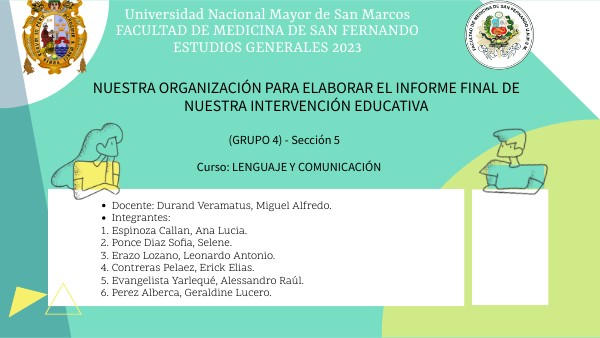NUESTRA ORGANIZACIÓN PARA ELABORAR EL INFORME FINAL DE NUESTRA INTERVENCIÓN EDUCATIVA