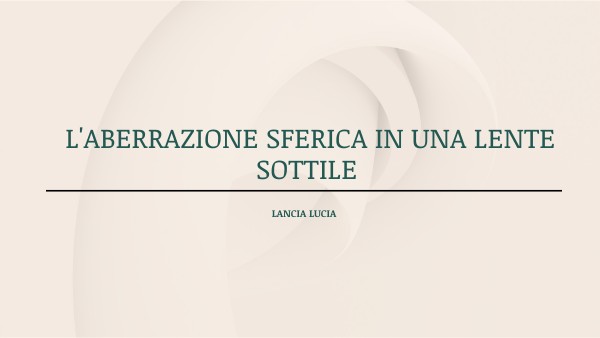 L'ABERRAZIONE SFERICA IN UNA LENTE SOTTILE