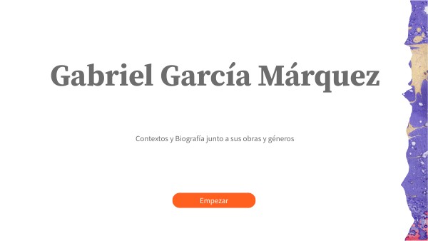 -Nació en 1927 y murió en 2014 a los 87 años-Estudió derecho en Colombia -En 1967, publicó "Cien años de soledad" -Destacado periodísticamente - Premio Nobel de Literatura