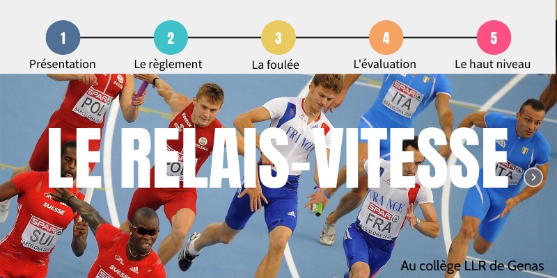 En athlétisme, le relais est une course à pied pratiquée sur piste et par équipes. Chaque membre doit parcourir une fraction du circuit avant de permettre au coéquipier de s'élancer à son tour en se transmettant le témoin, à moins qu'il soit le dernier à courir et qu'il franchisse la ligne d'arrivée. Aux jeux olympiques et au championnat du monde, il existe le 4x100m et le 4x400m. En EPS, nous travaillerons et vous serez évalués sur du 2x30m. Allons voir tout cela en images!