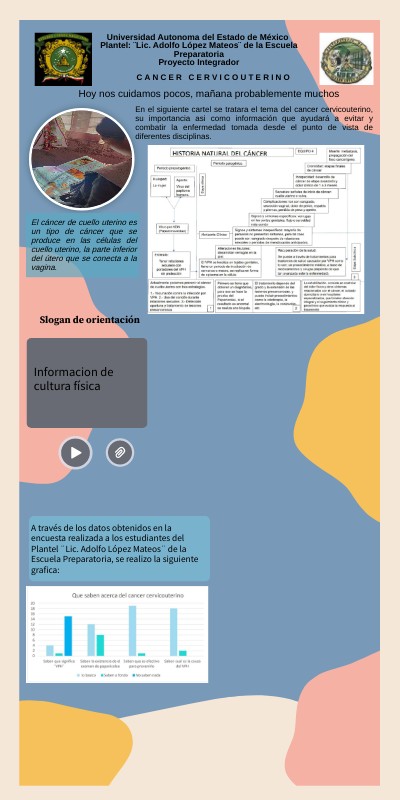 En el siguiente cartel se tratara el tema del cancer cervicouterino, su importancia asi como información que ayudará a evitar y combatir la enfermedad tomada desde el punto de vista de diferentes disciplinas.