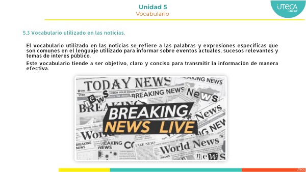 El vocabulario utilizado en las noticias se refiere a las palabras y expresiones específicas que son comunes en el lenguaje utilizado para informar sobre eventos actuales, sucesos relevantes y temas de interés público. Este vocabulario tiende a ser objetivo, claro y conciso para transmitir la información de manera efectiva.