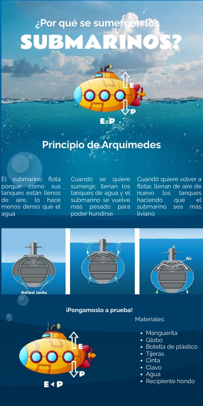 Cuand0 se quiere sumergir, llenan los tanques de agua y el submarino se vuelve más pesado para poder hundirse.