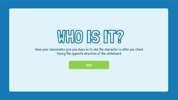 Have your classmates give you clues as to who the character is while you stand facing the opposite direction of the whiteboard