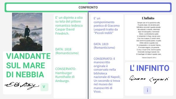 Entrambe le opere esprimono il concetto del sublime; mentre nella prima il viandante vuole scoprire cosa c'è oltre la nebbia , nella seconda l'uomo vuole scoprire cosa si nasconde oltre la siepe.