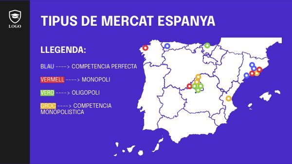 BLAU ----> COMPETENCIA PERFECTA VERMELL ----> MONOPOLI VERD ----> OLIGOPOLI GROC ----> COMPETENCIA MONOPOLISTICA