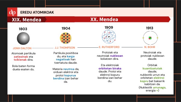 Atomoak partikula zatiezinak eta txikienak dira. Bola baten forma duela esaten du.