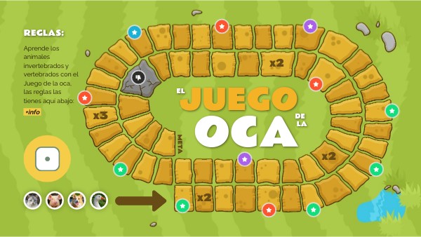 Aprende los animales invertebrados y vertebrados con el Juego de la oca, las reglas las tienes aquí abajo: