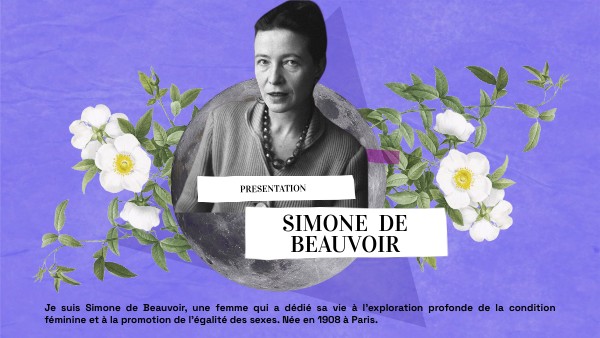 Je suis Simone de Beauvoir, une femme qui a dédié sa vie à l'exploration profonde de la condition féminine et à la promotion de l'égalité des sexes. Née en 1908 à Paris.