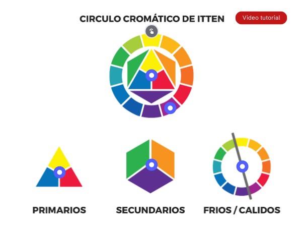 Los tres colores primarios (azul, rojo, y amarillo) están en el centro del círculo.
