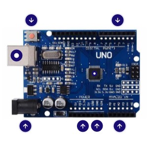 Proporciona la polaridad negativa en cualquier circuito al conectarse en uno de los 3 puertos GND (Ground) o tierra por su abreviación en inglés.