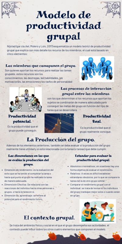 Nijstad (gar cía.Ael, Molero y Lois, 2017) esquematiza un modelo teórici de productividad grupal que explica con más detalle los recuros de los miembros, el cual está basado en cinco elementos;