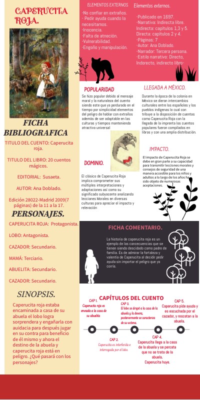 Caperucita roja estaba encaminada a casa de su abuela el lobo logra sorprendera y engañarla con auidacia para después jugar en su contra para beneficio de él mismo y ahora el destino de la abuela y caperucita roja está en peligro. ¿Qué pasará con los personajes?