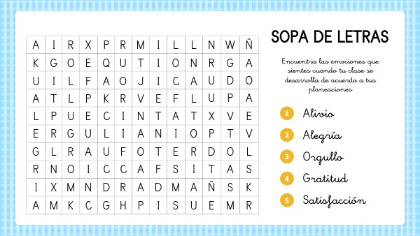 Encuentra las emociones que sientes cuando tu clase se desarrolla de acuerdo a tus planeaciones