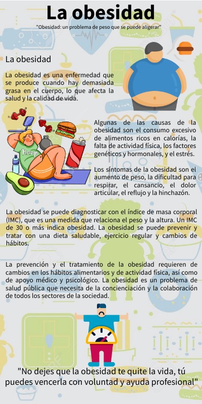 La obesidad es una enfermedad que se produce cuando hay demasiada grasa en el cuerpo, lo que afecta la salud y la calidad de vida.