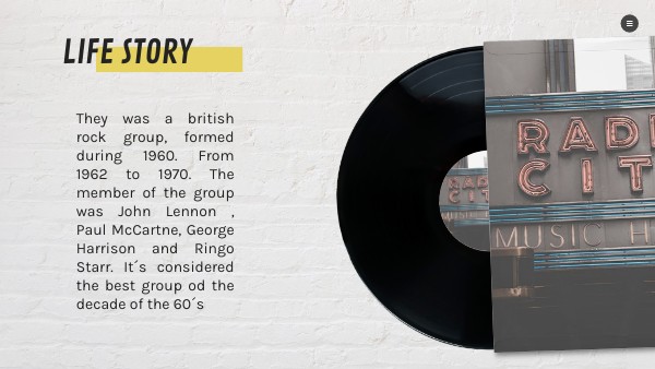 They was a british rock group, formed during 1960. From 1962 to 1970. The member of the group was John Lennon , Paul McCartne, George Harrison and Ringo Starr. It´s considered the best group od the decade of the 60´s
