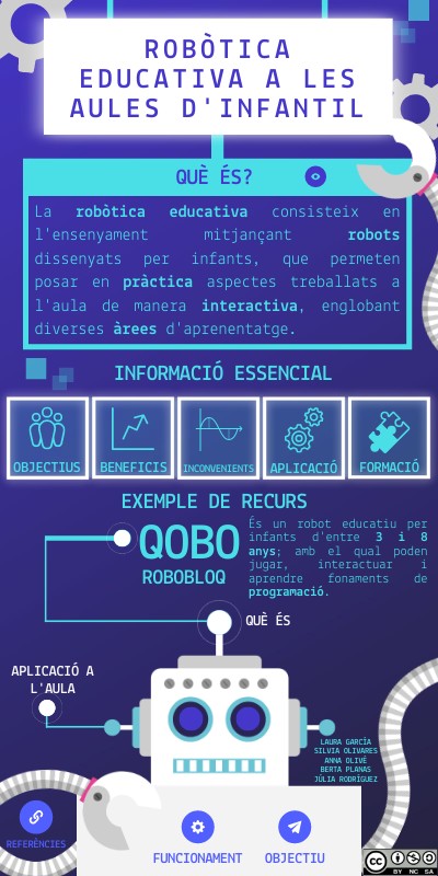 La robòtica educativa consisteix en l'ensenyament mitjançant robots dissenyats per infants, que permeten posar en pràctica aspectes treballats a l'aula de manera interactiva, englobant diverses àrees d'aprenentatge.