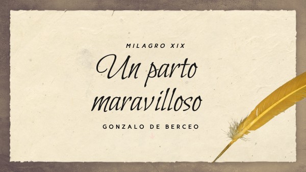 "Oíd - dijo la dueña - , oíd buena campaña; yo creo que no oísteis nunca mayor hazaña; será muy bien narrada por toda tierra extraña, en África y en Grecia, y también en España. Cuando vi que de muerte librarme no podía, que de las ondas fieras circuncidada me veía, enconmendeme a Cristo y a su Madre, María, pues según mi entender de otro no dependía. Estándome yo en esto vino Santa María, cubriome con la manga de su rica almejía: ya no sentí el peligro más que cuando dormía; si estuviera en un baño, más leda no estaría. Sin cuitas y sin pena, y sin ningún dolor parí este pequeñuelo, loado sea el Criador: tuve buena madrina, no podría ser mejor; me hizo misericordia la Madre del Señor".