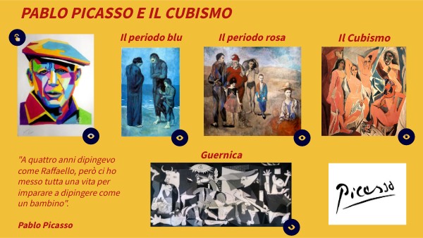 Pablo Picasso, pseudonimo di Pablo Ruiz y Picasso (Malaga, 25 ottobre 1881 – Mougins, 8 aprile 1973), pittore, scultore e litografo spagnolo, è stato uno dei più grandi artisti del XX secolo. Nato a Malaga, in Andalusia, Picasso ha vissuto tra la Spagna e la Francia e ha dimostrato fin da giovane il suo amore e il suo talento per la pittura. Cofondatore del movimento cubista, inventore delle tecniche del collage e dell'assemblage, ha denunciato attraverso la sua opera gli orrori delle guerre, delle dittature e della violenza. Il suo stile è stato alla base dello sviluppo del cubismo, un movimento artistico che prevede la rappresentazione di una figura sotto molteplici punti di vista.