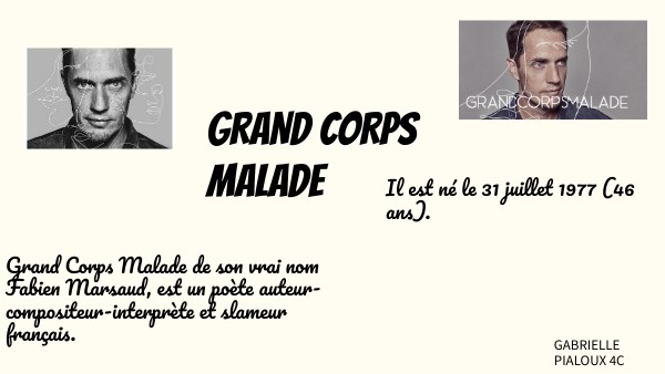 Grand Corps Malade de son vrai nom Fabien Marsaud, est un poète auteur-compositeur-interprète et slameur français.